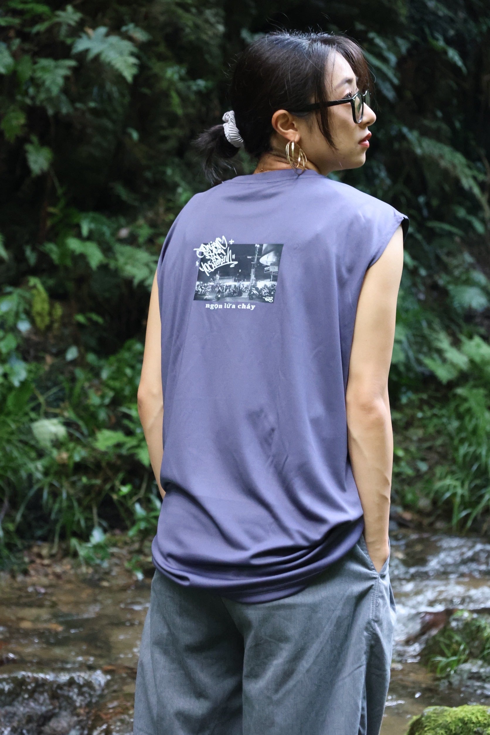 左胸には、BURNINGBLAZEのBNBのロゴと自分の出身地でもある福岡のFUKをデザインにしました。 そしてバックプリントには、旅先ベトナムホーチミンで撮った一枚「ナイトマーケット」をプリントしました。 カラーは(グレイッシュパープル、ネイビー)の2色展開。 速乾性のある生地なので運動するときにぴったりのアイテムです♪ 中にTシャツなどを着てベスト感覚で着るのもOK! 是非チェックしてみて下さい。 model:身長154cm XLサイズを着用