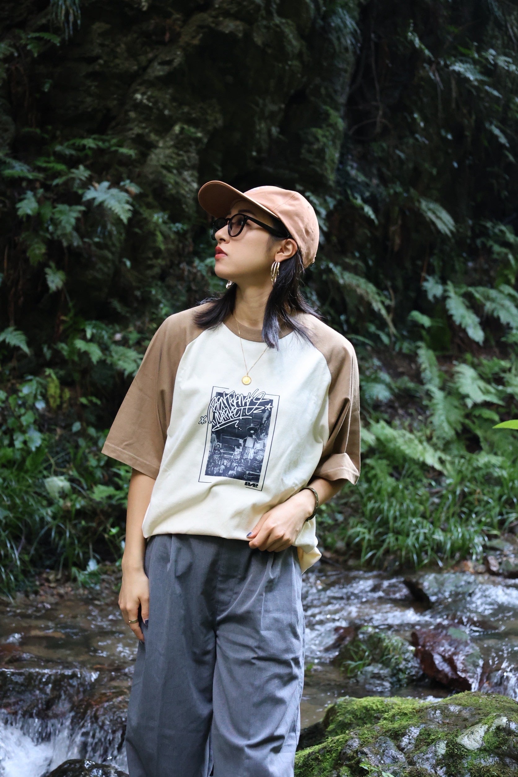 Ben Thanh Market ラグランTシャツ(ヴィンテージ ナチュラル/ダークキャメル)