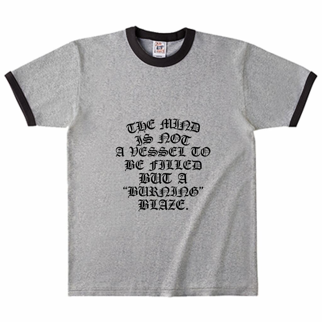 BURNING BLAZE Old English リンガーTシャツ (ブラック&グレー)