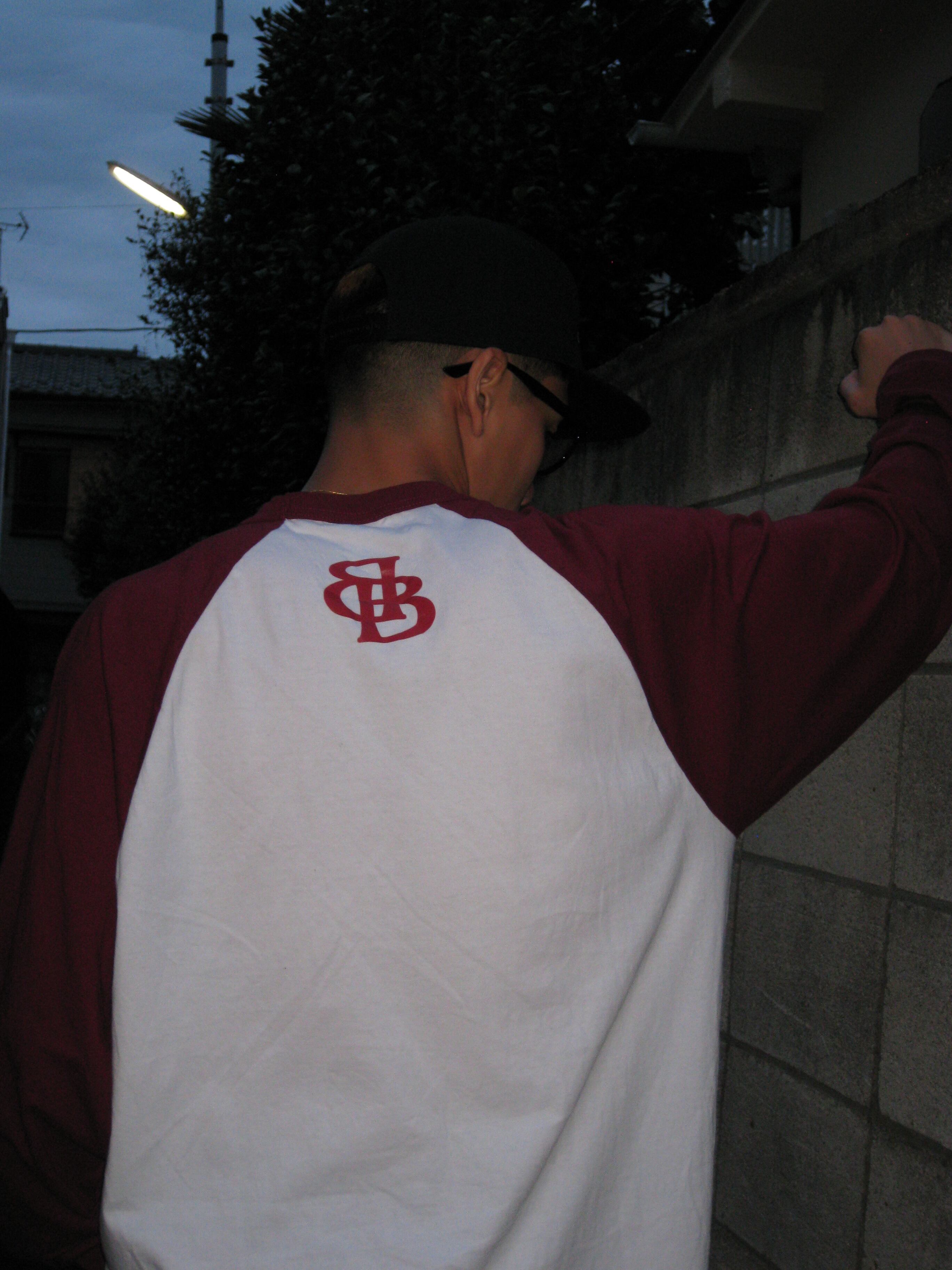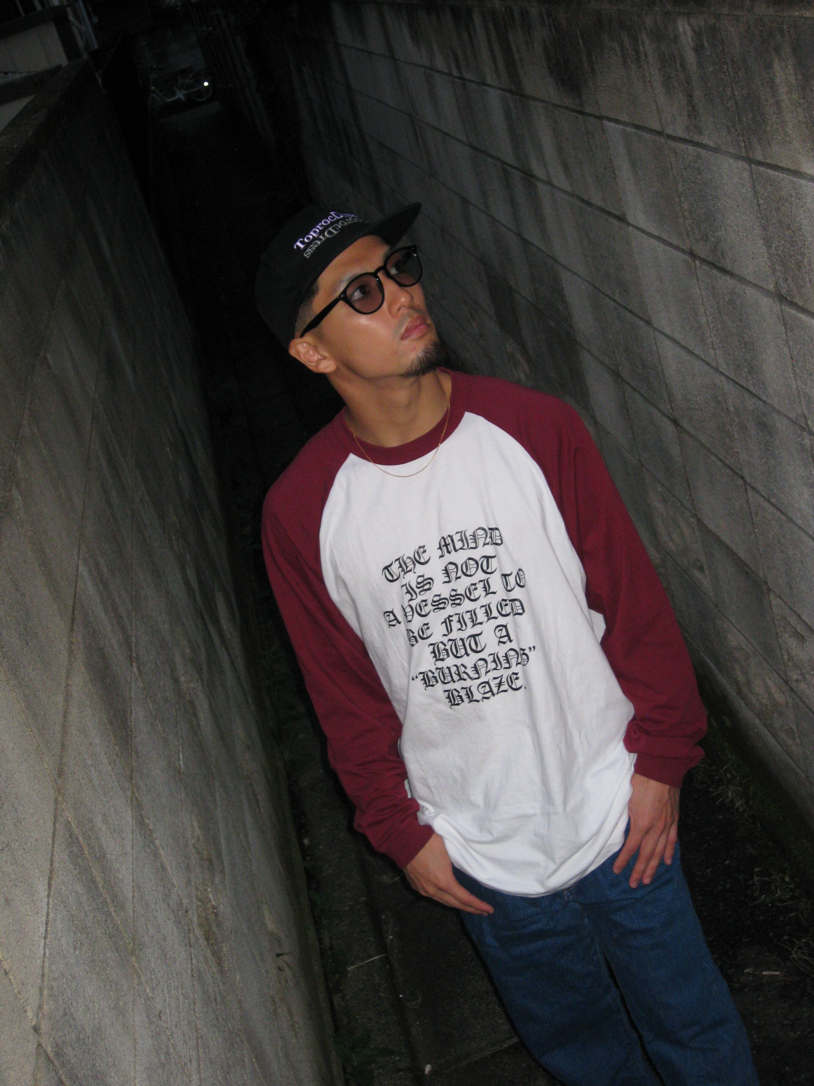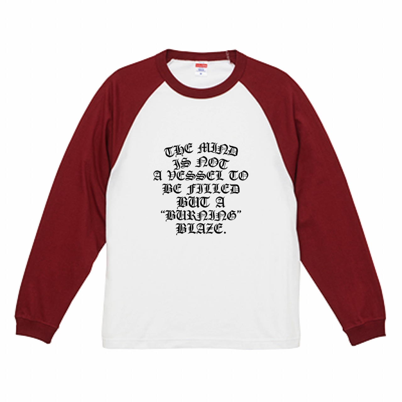 BURNING BLAZE ラグランTシャツ(バーガンディー&ホワイト)